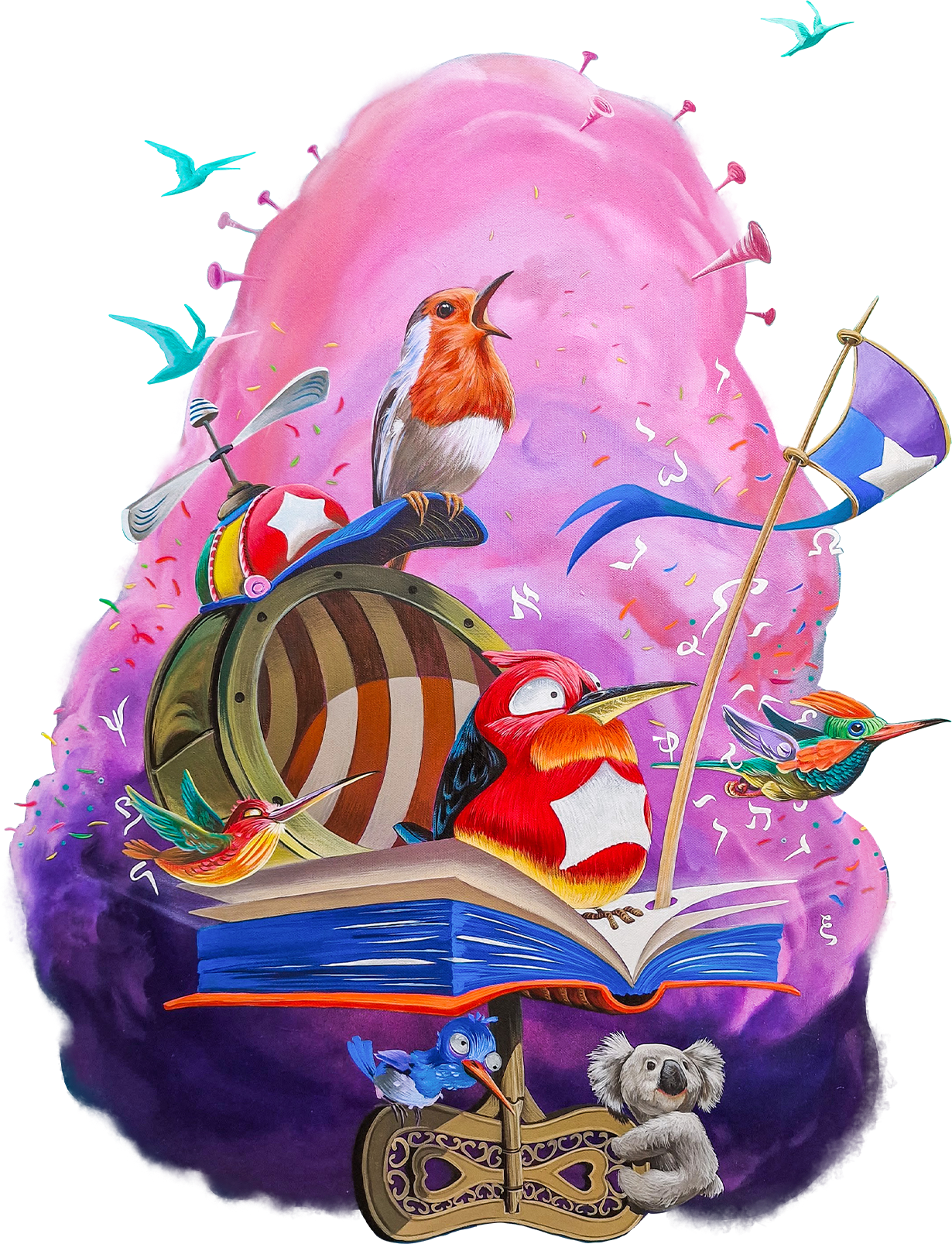 CANDYLAND AND THE BOOK OF LIFE is a 200-page graphic odyssey that explores the human condition through the wings of an avian society. When the digital noise of the city fades, a journey of survival begins, a descent into a lush, dangerous wilderness where every bird carries the weight of a human soul.
